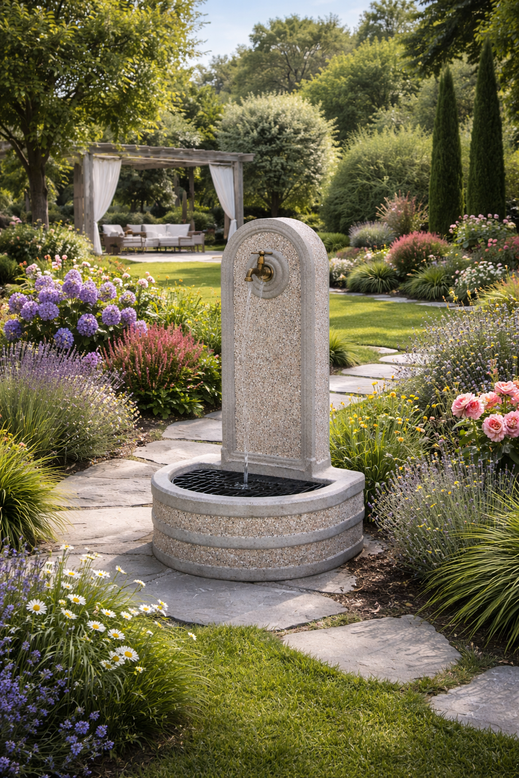 Nell’arredo outdoor, il materiale fa la differenza. Le informazioni presenti sul sito del marchio fanno riferimento a soluzioni in cemento/calcestruzzo, metallo, granito, oltre a varianti in ghisa e ferro per alcune tipologie di fontane. Questi materiali sono scelti perché adatti all’uso esterno e capaci di offrire robustezza, stabilità e buona tenuta nel tempo. Il cemento, in particolare, è molto apprezzato per il suo aspetto materico e per la capacità di inserirsi bene sia in ambienti classici sia in contesti più moderni; metallo e granito permettono invece di rispondere a esigenze estetiche differenti e a progetti dal carattere più specifico.