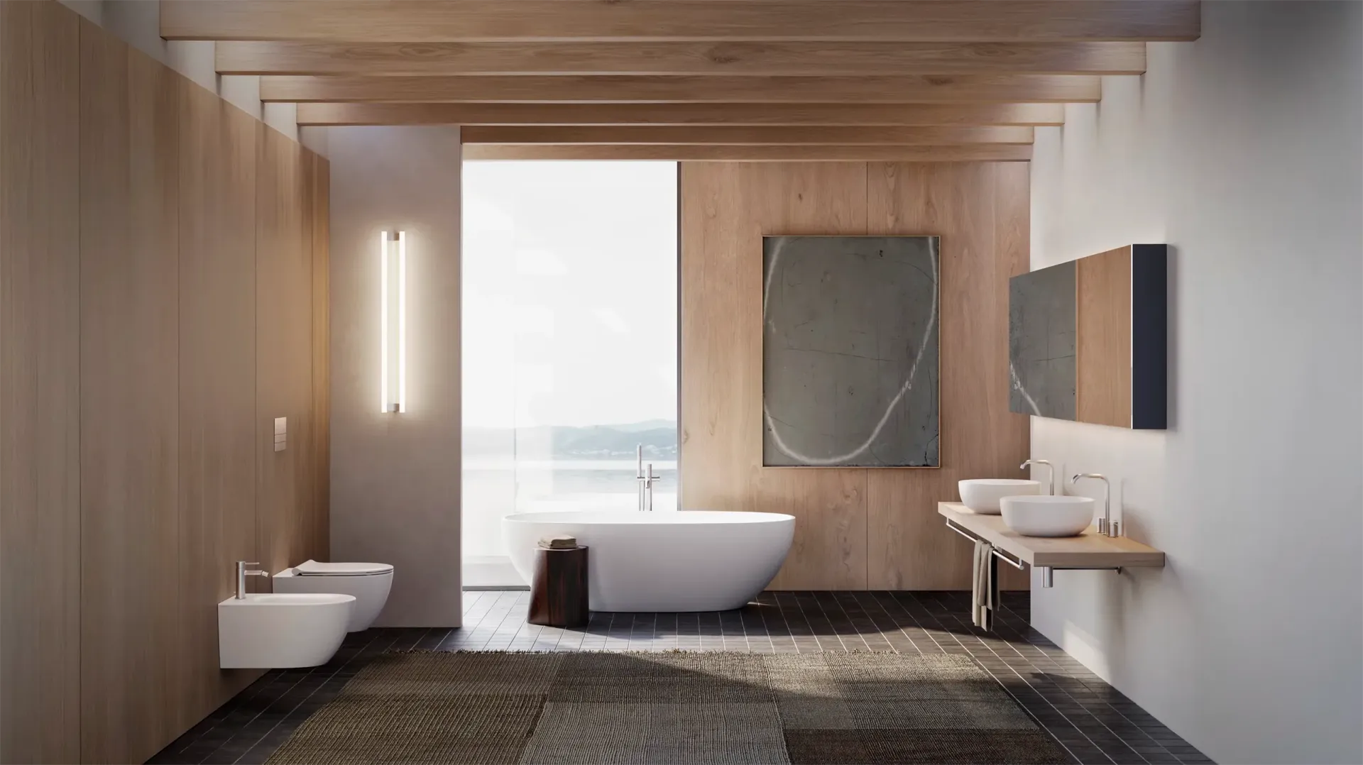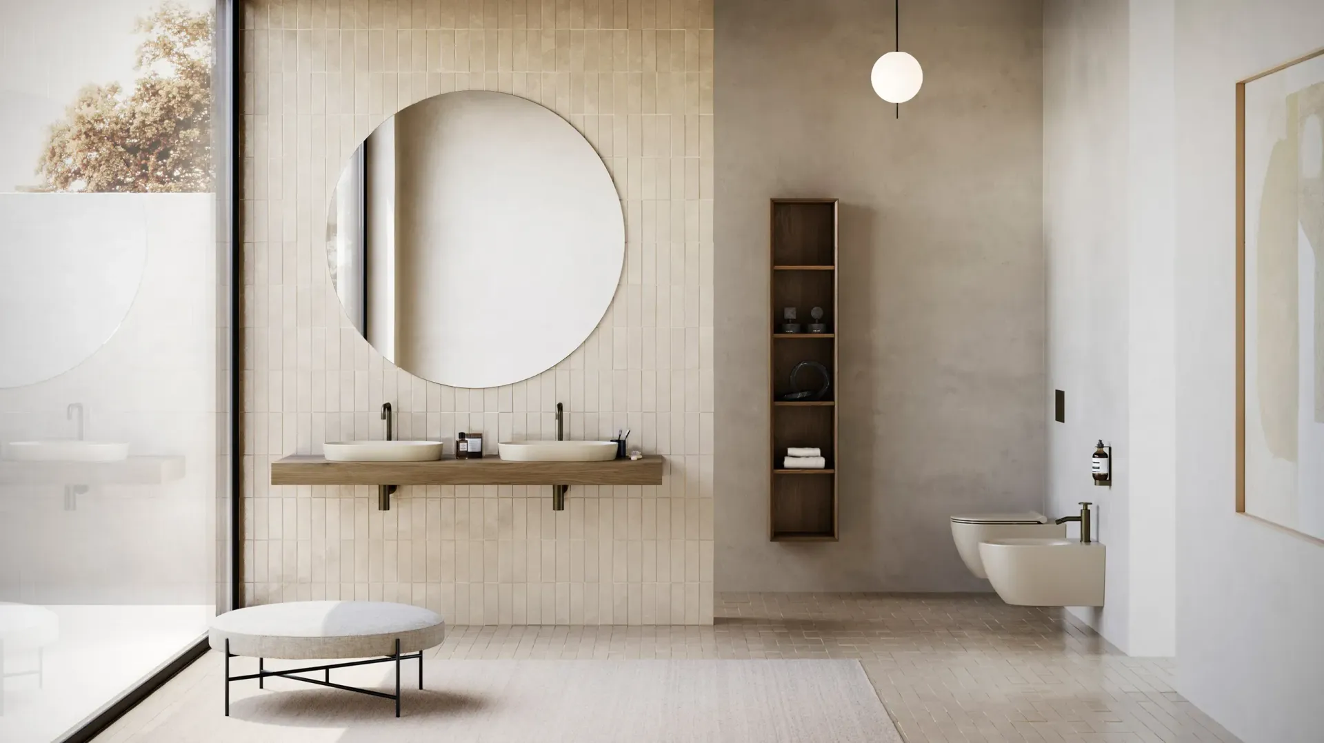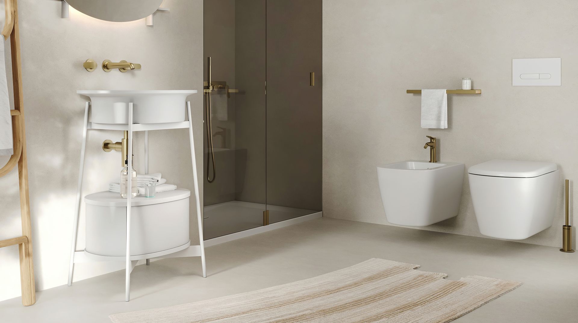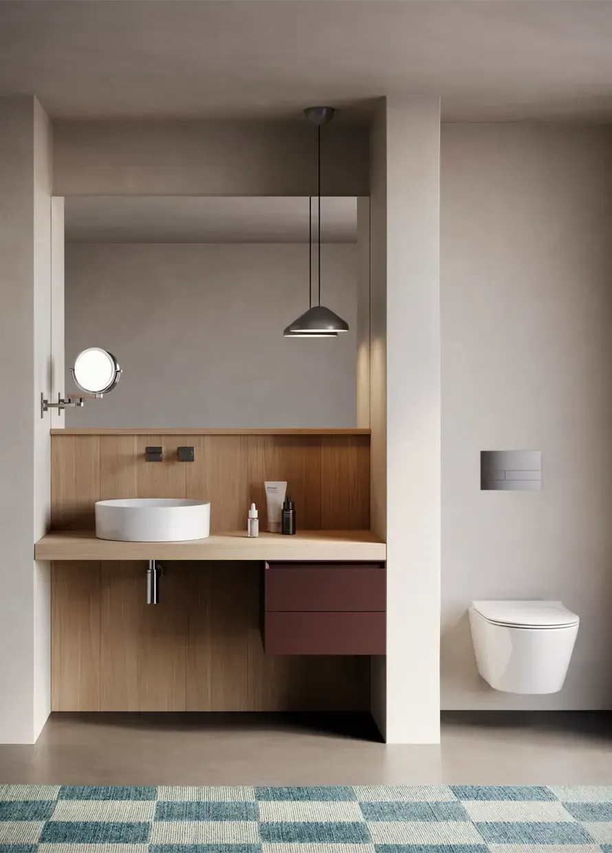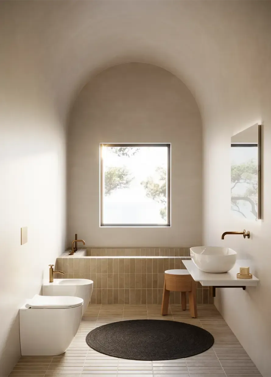 - Sanitari sospesi, ideali per un design moderno e per facilitare la pulizia del pavimento, creando un effetto visivo più leggero e ordinato